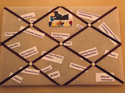 My 3rd grader needed to make a wall display showcasing the math vocabulary words that he will be using this quarter. A bulletin board is a must for creating a space or assigned project without having to put dozens of pins in your walls.